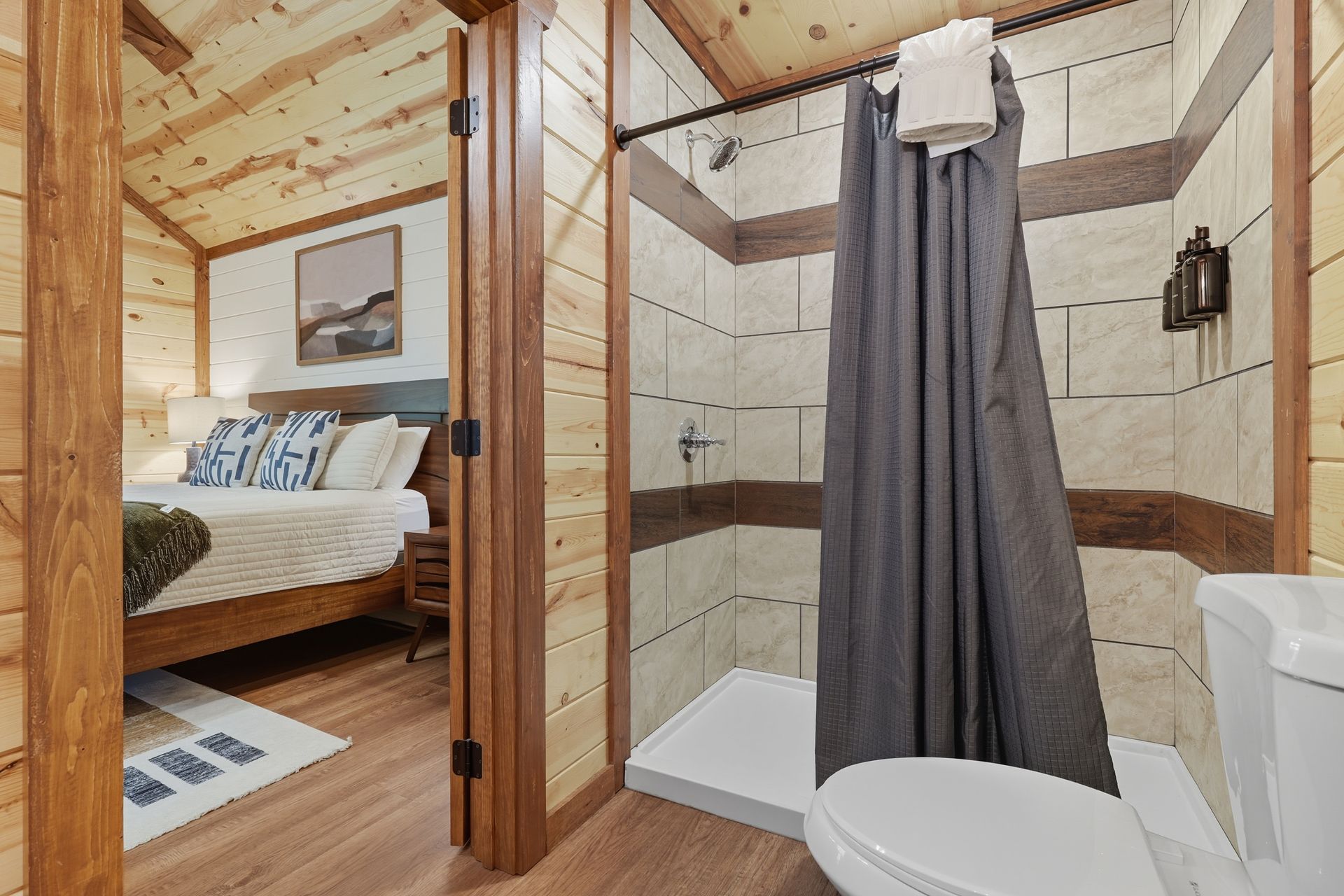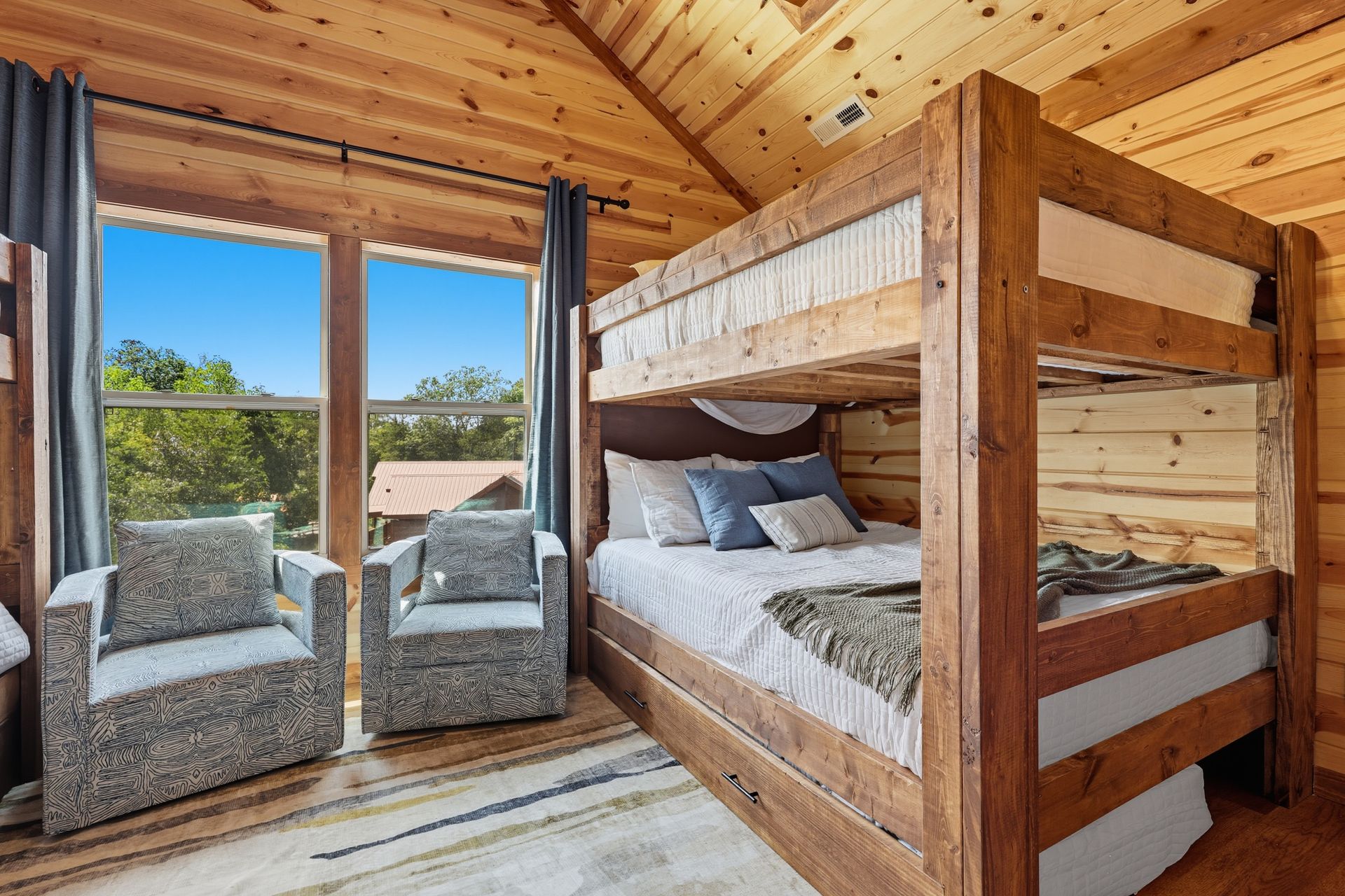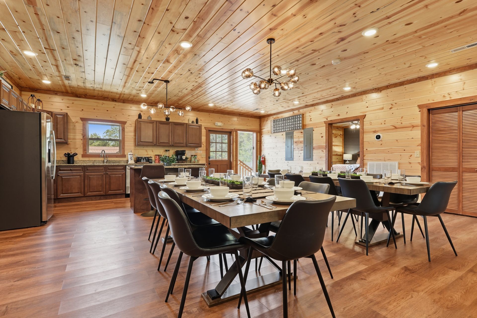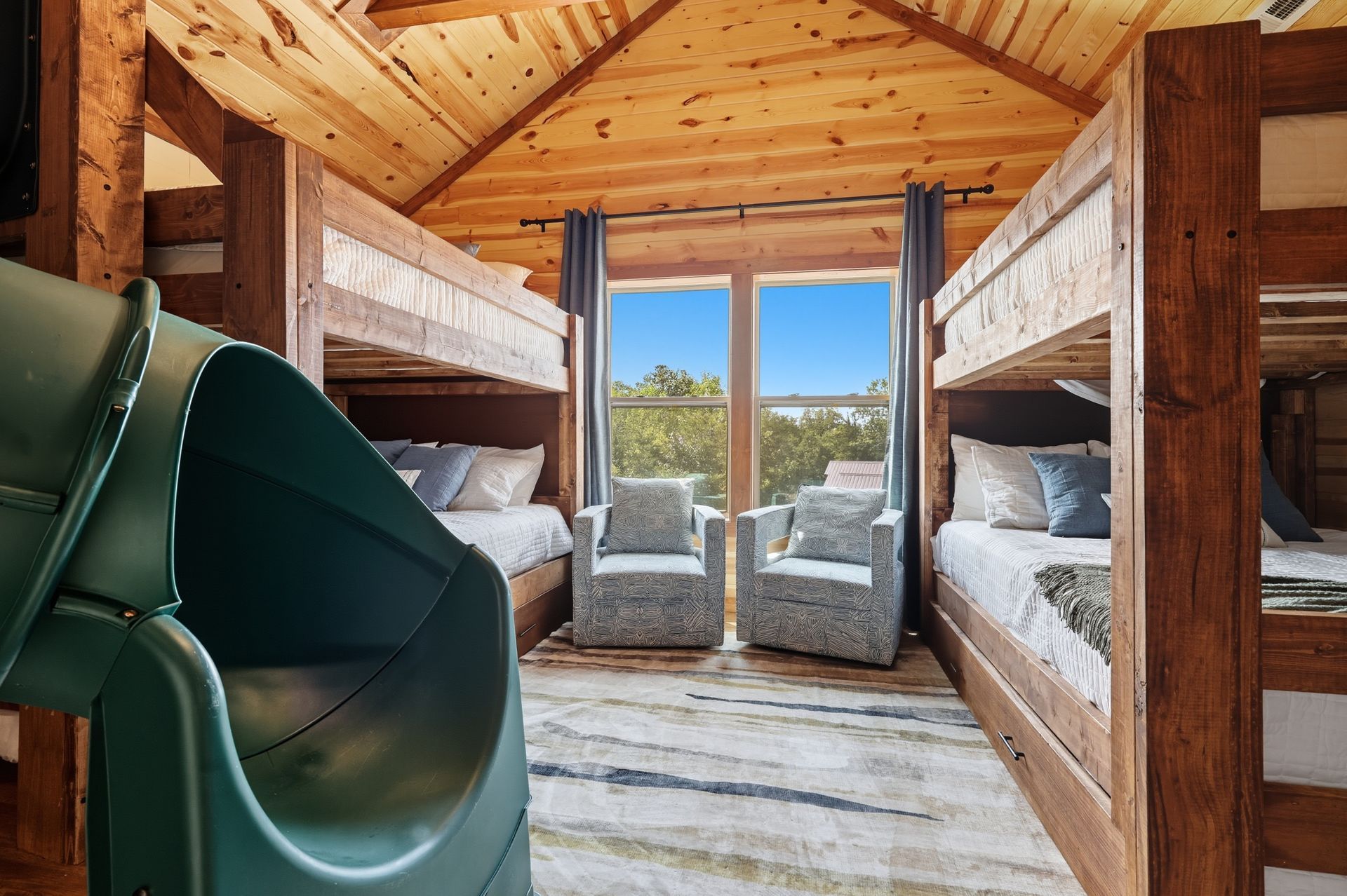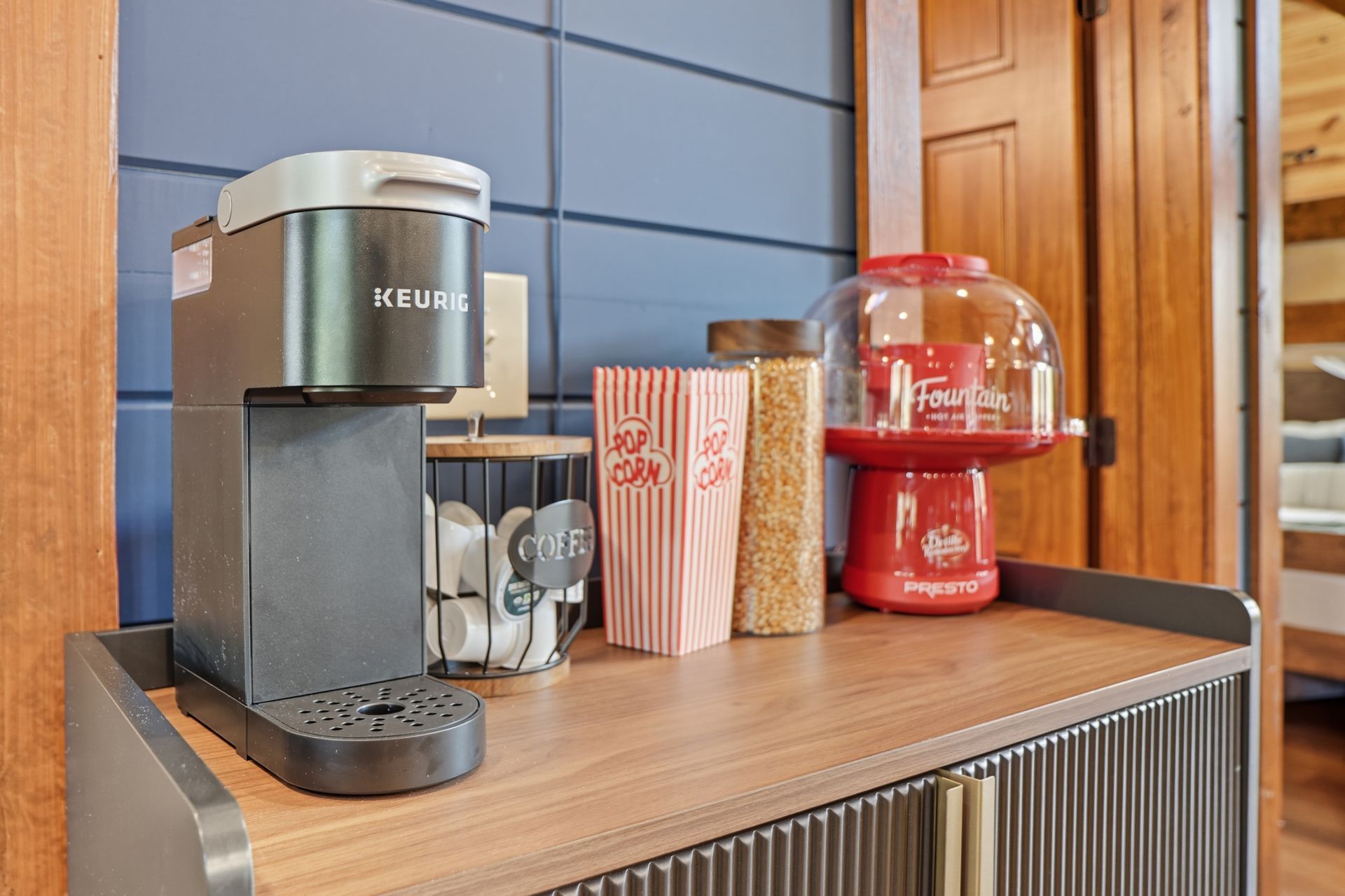 Game Time Retreat is where play meets relaxation. Kids race down the bunk room slide, friends compete in the arcade-packed EPIC game room, and in the evenings gather around the fire pit as a waterfall cascades before you. Swim together beneath the stars in the galaxy-lit pool, watch movies on the rooftop theater, or unwind in the forest-view barrel sauna. With 8 en-suite bedrooms, 2 living areas, and dog-friendly comfort, this Smoky Mountain escape blends fun, relaxation, and lasting memories.