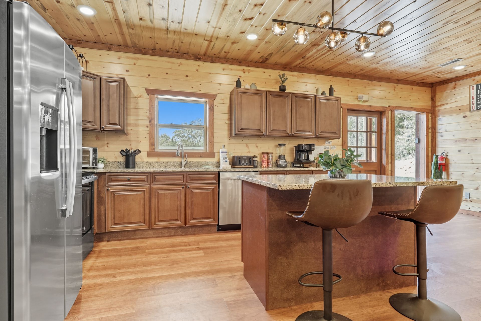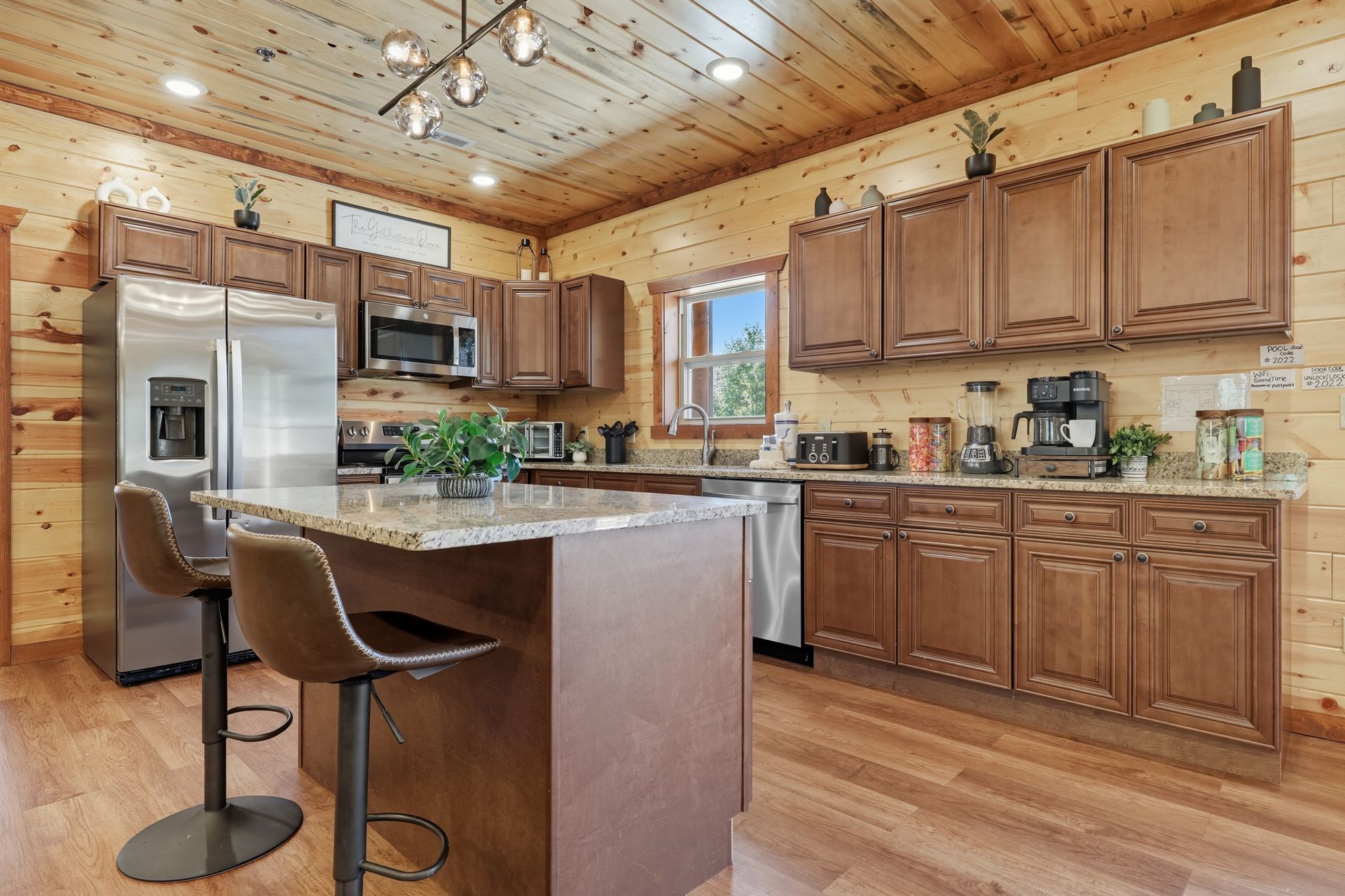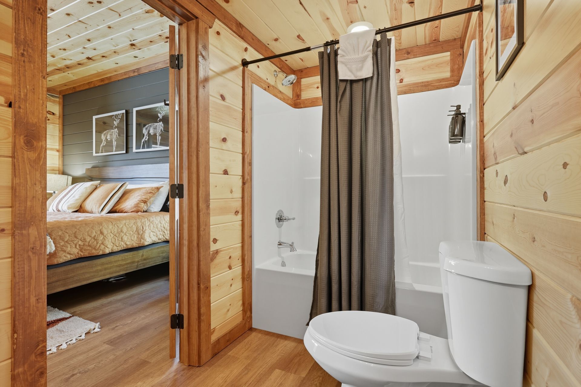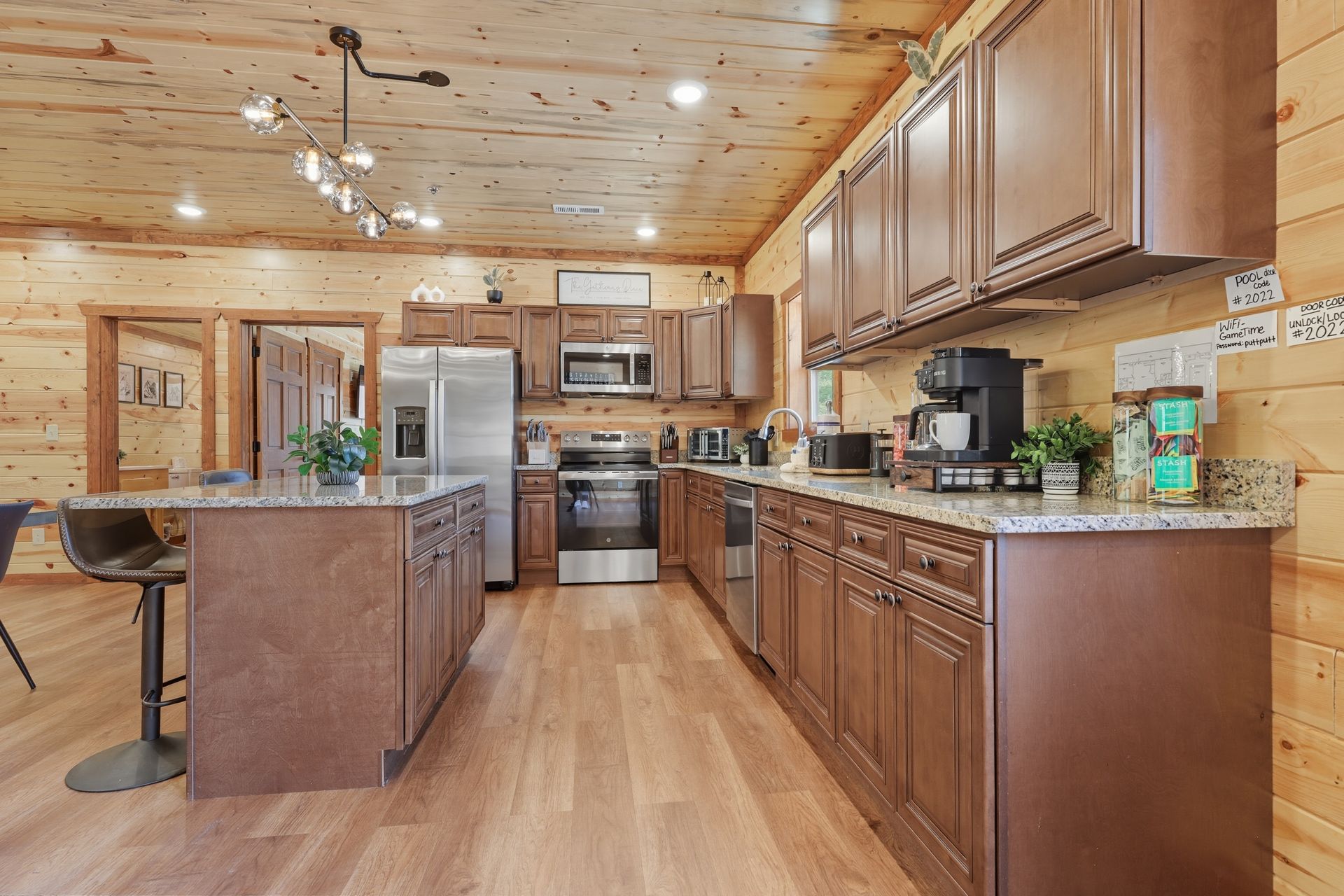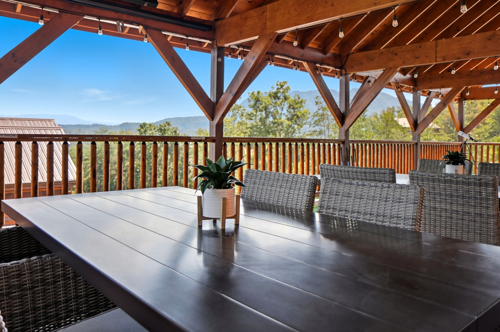 Game Time Retreat is where play meets relaxation. Kids race down the bunk room slide, friends compete in the arcade-packed EPIC game room, and in the evenings gather around the fire pit as a waterfall cascades before you. Swim together beneath the stars in the galaxy-lit pool, watch movies on the rooftop theater, or unwind in the forest-view barrel sauna. With 8 en-suite bedrooms, 2 living areas, and dog-friendly comfort, this Smoky Mountain escape blends fun, relaxation, and lasting memories.