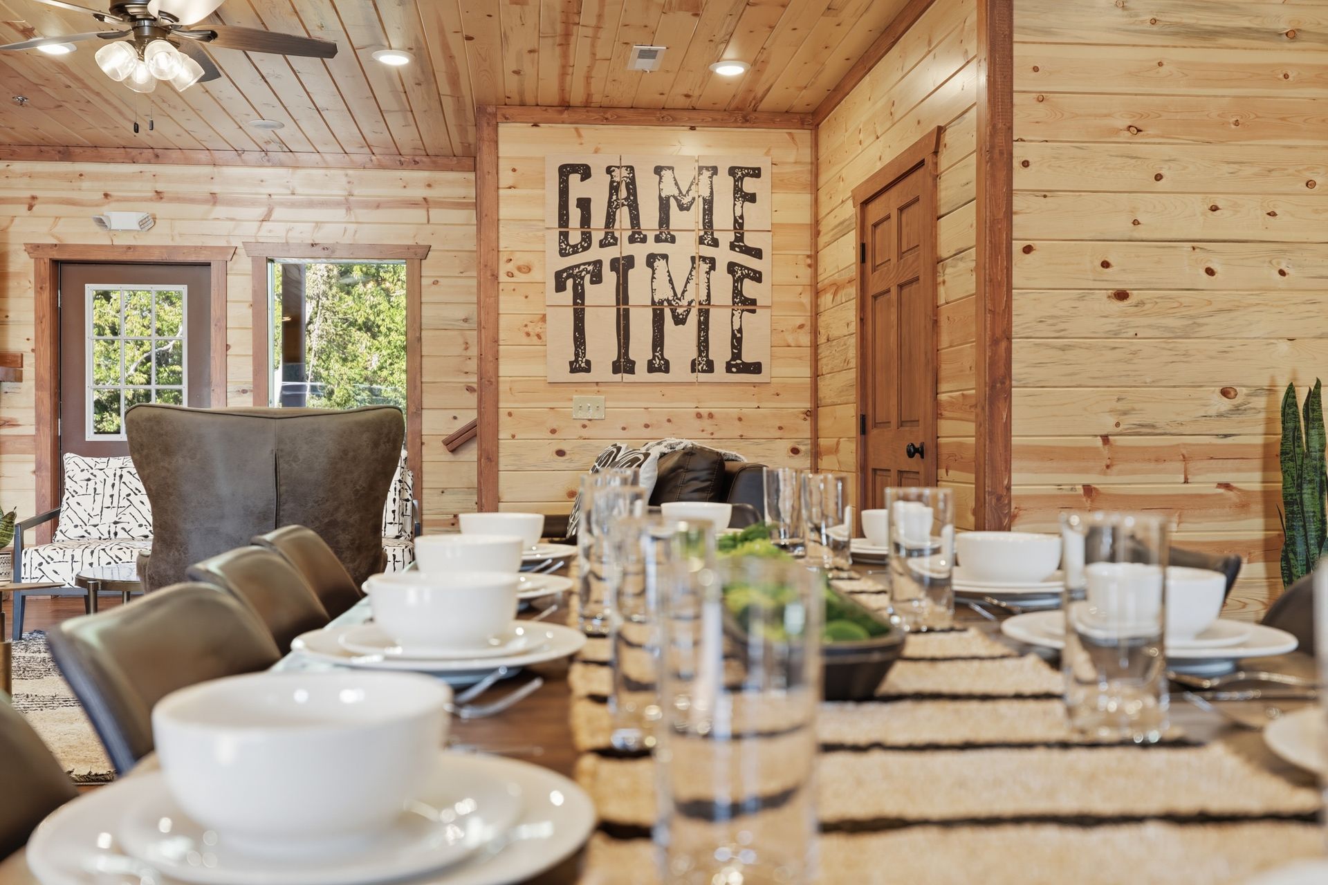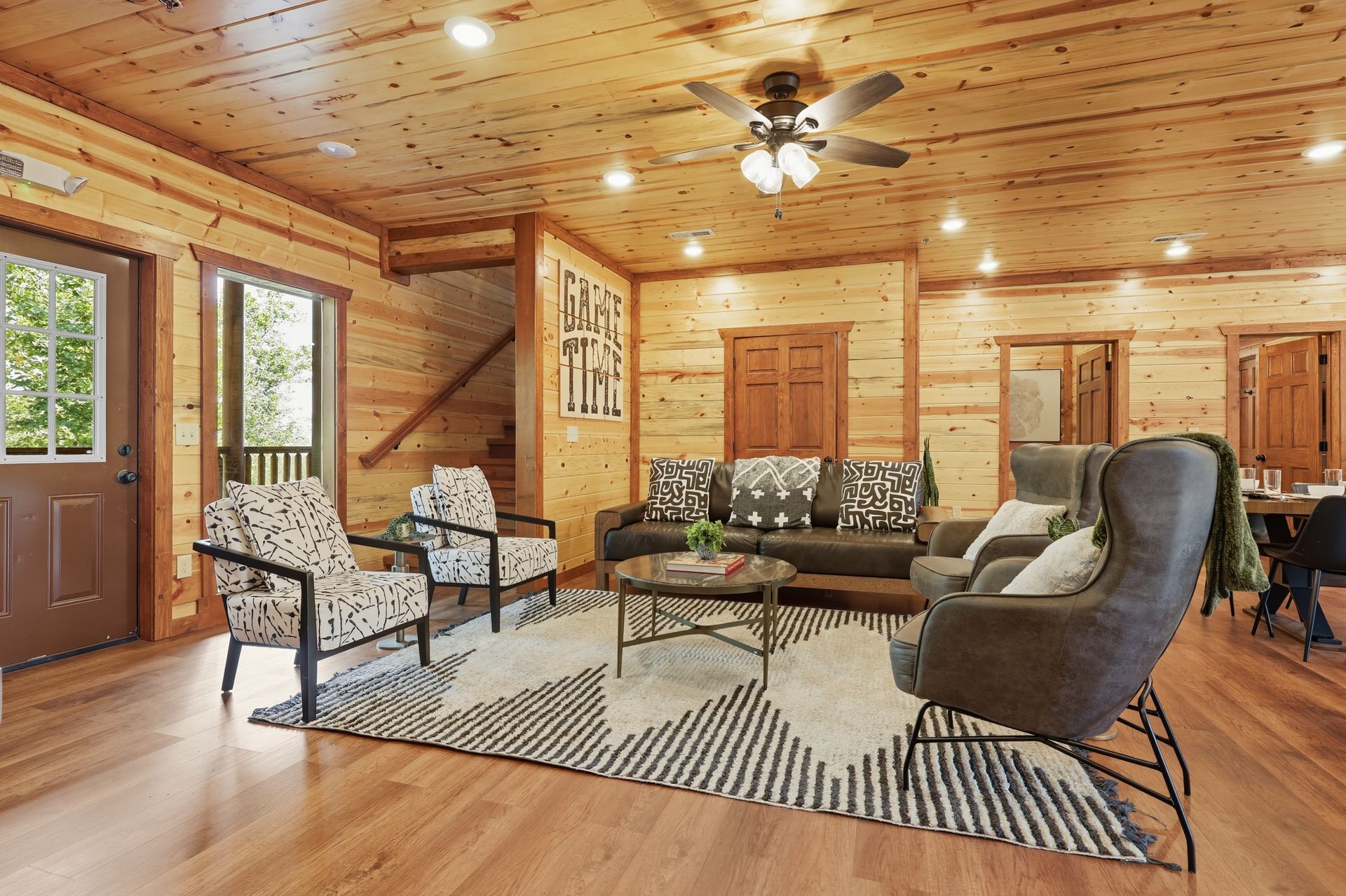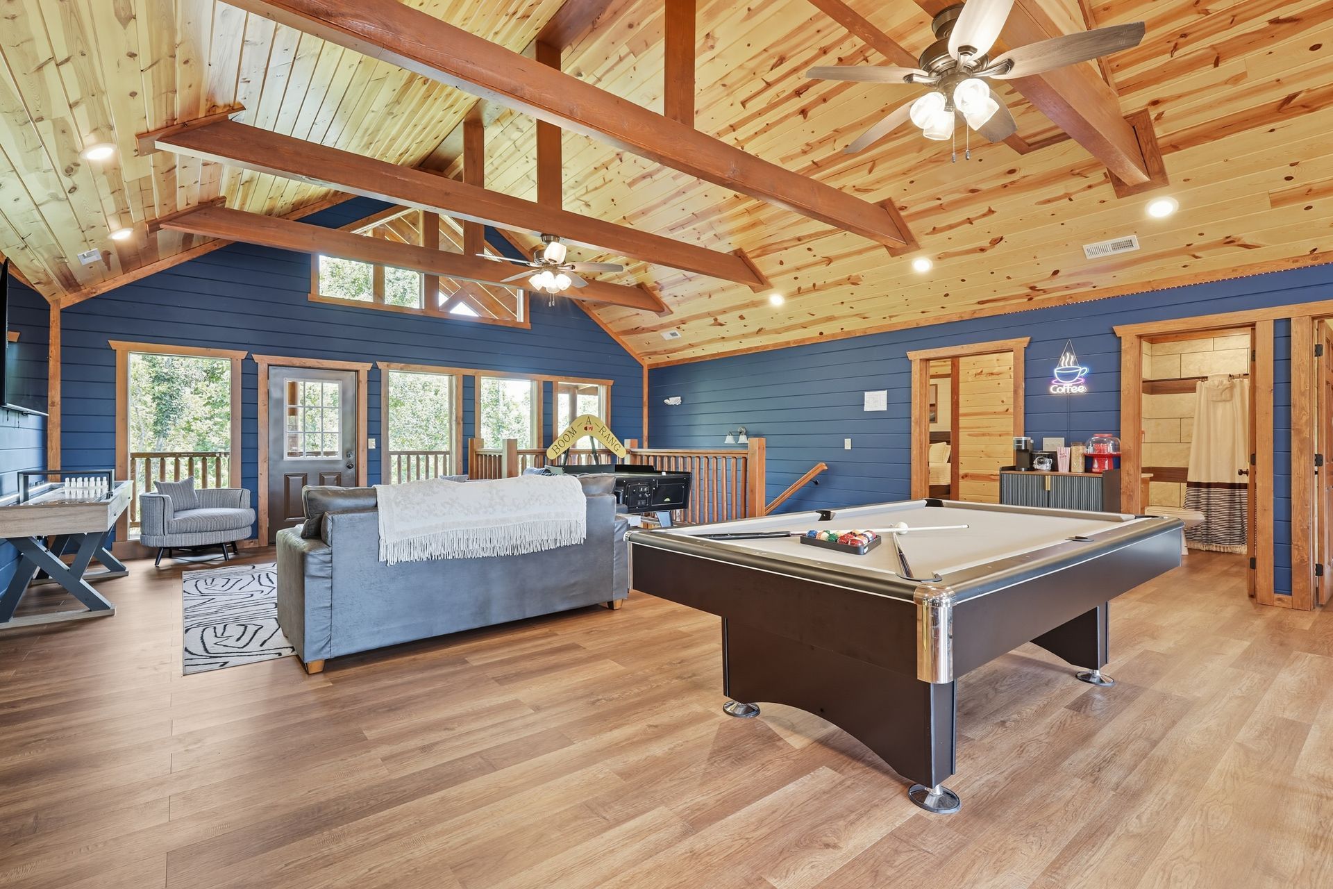 Where adventure meets luxury in the Smoky Mountains. Splash in the galaxy-lit pool, unwind by the waterfall fire pit, and watch rooftop movies under the stars. With 8 en-suites and epic amenities, Game Time Retreat is the ultimate group getaway.