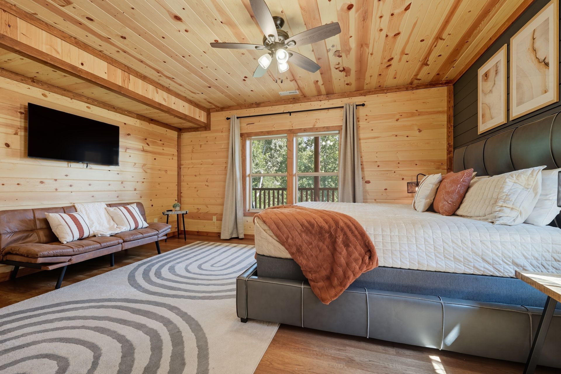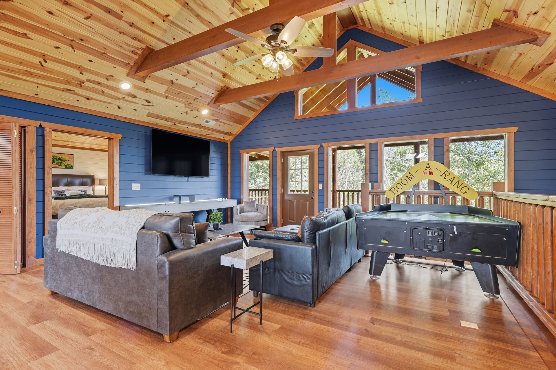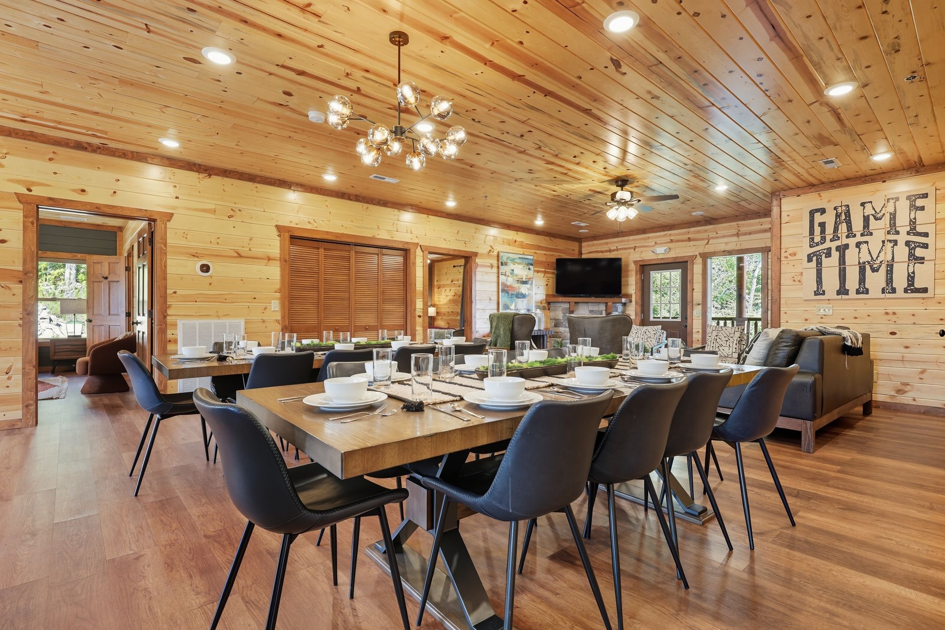 Where adventure meets luxury in the Smoky Mountains. Splash in the galaxy-lit pool, unwind by the waterfall fire pit, and watch rooftop movies under the stars. With 8 en-suites and epic amenities, Game Time Retreat is the ultimate group getaway.