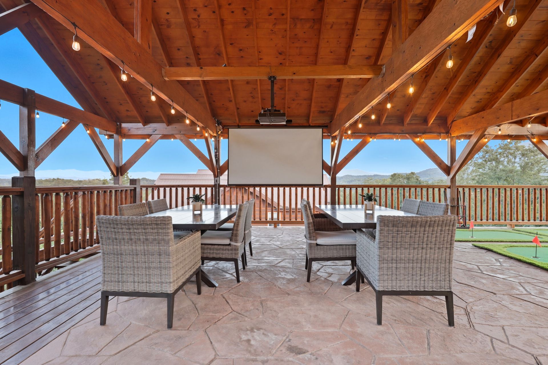 Game Time Retreat is more than a stay in a cabin. It is a waterfall roaring by firelight, galaxies glowing above your swim, movies unfolding under mountain stars, and a sauna where silence and relaxation meet the forest. A Smoky Mountain escape your group will never forget—where your dogs are also welcome.