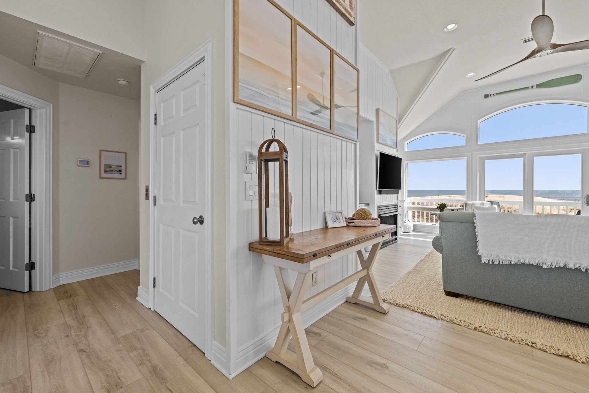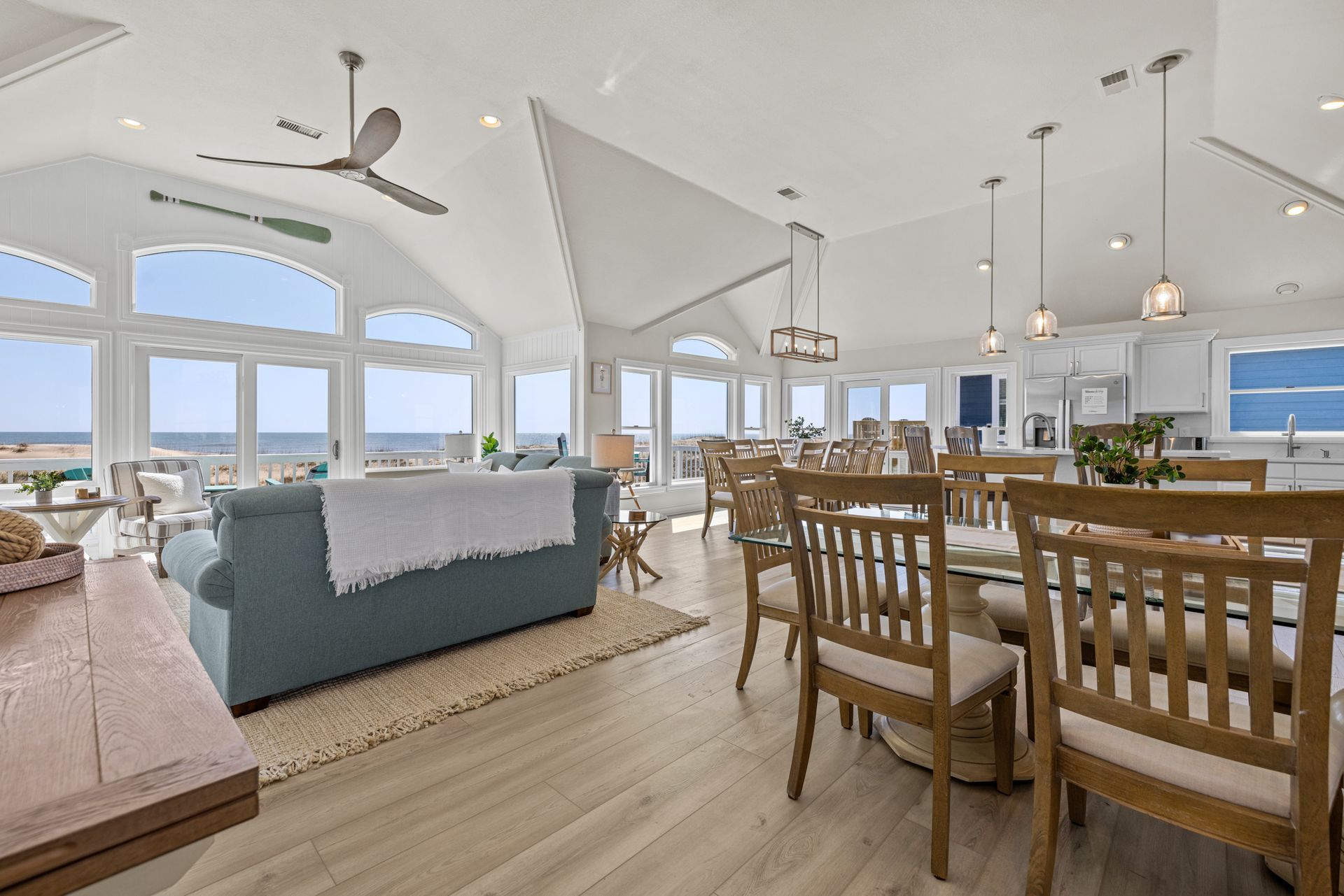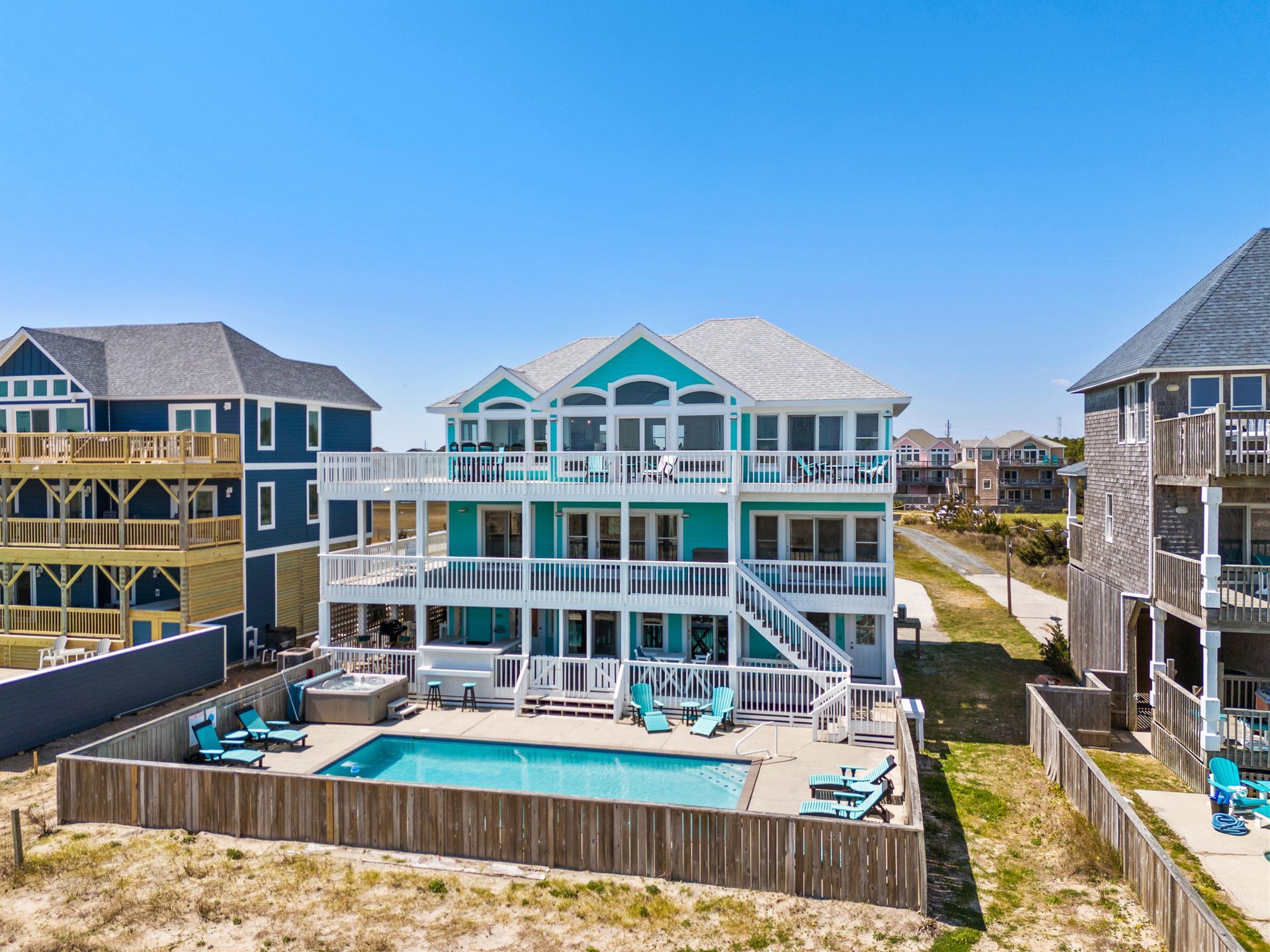 The Blue Moon Beach House — a rare Outer Banks retreat where soothing ocean breezes, ethereal pastel sunrises, and starlit nights meet modern comfort. Nestled along the pristine Cape Hatteras National Seashore, this 7-bedroom, 6.5-bath oceanfront home offers panoramic views, a private heated pool, hot tub, game room, home theater, and elevator — all designed for gatherings of family and friends.