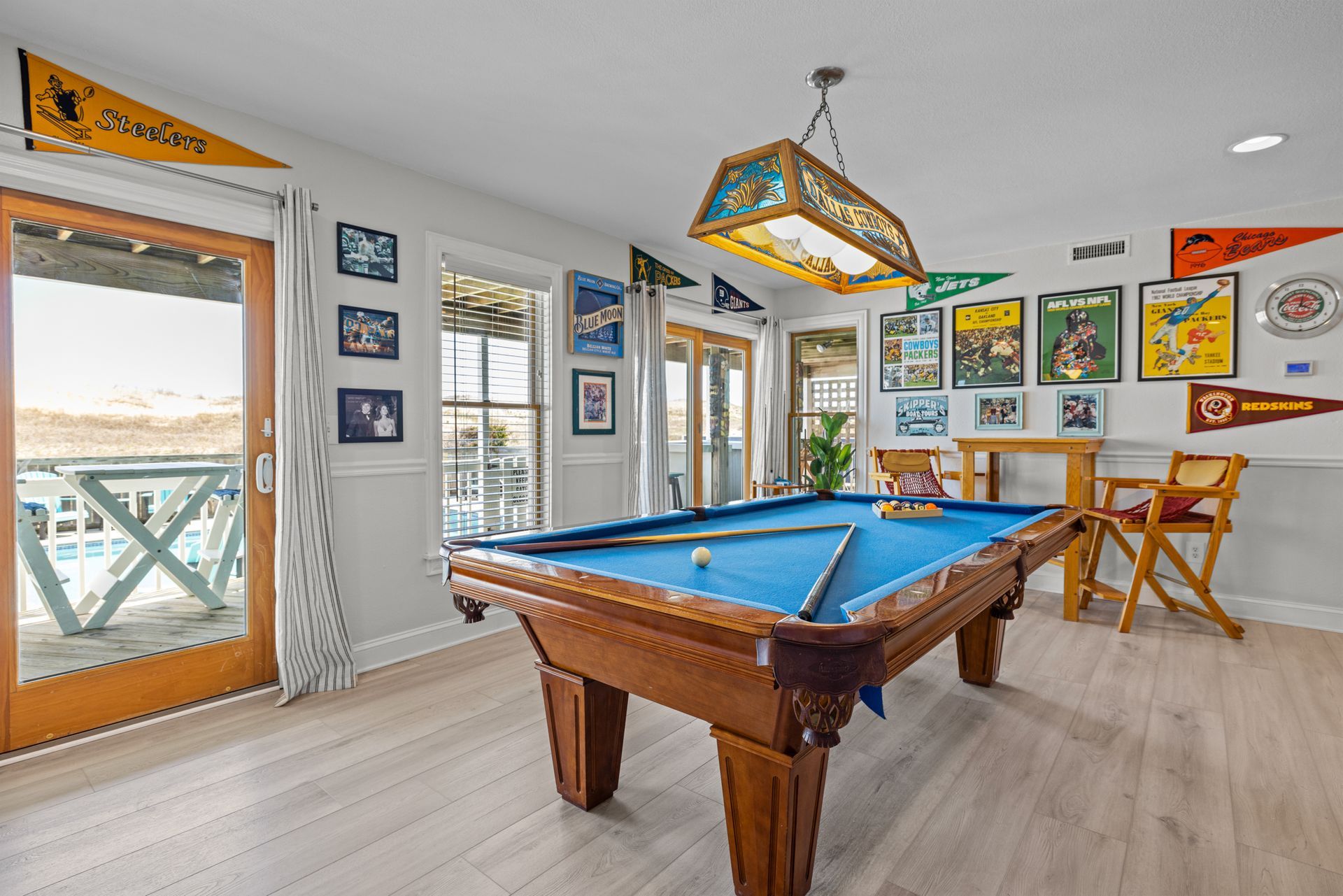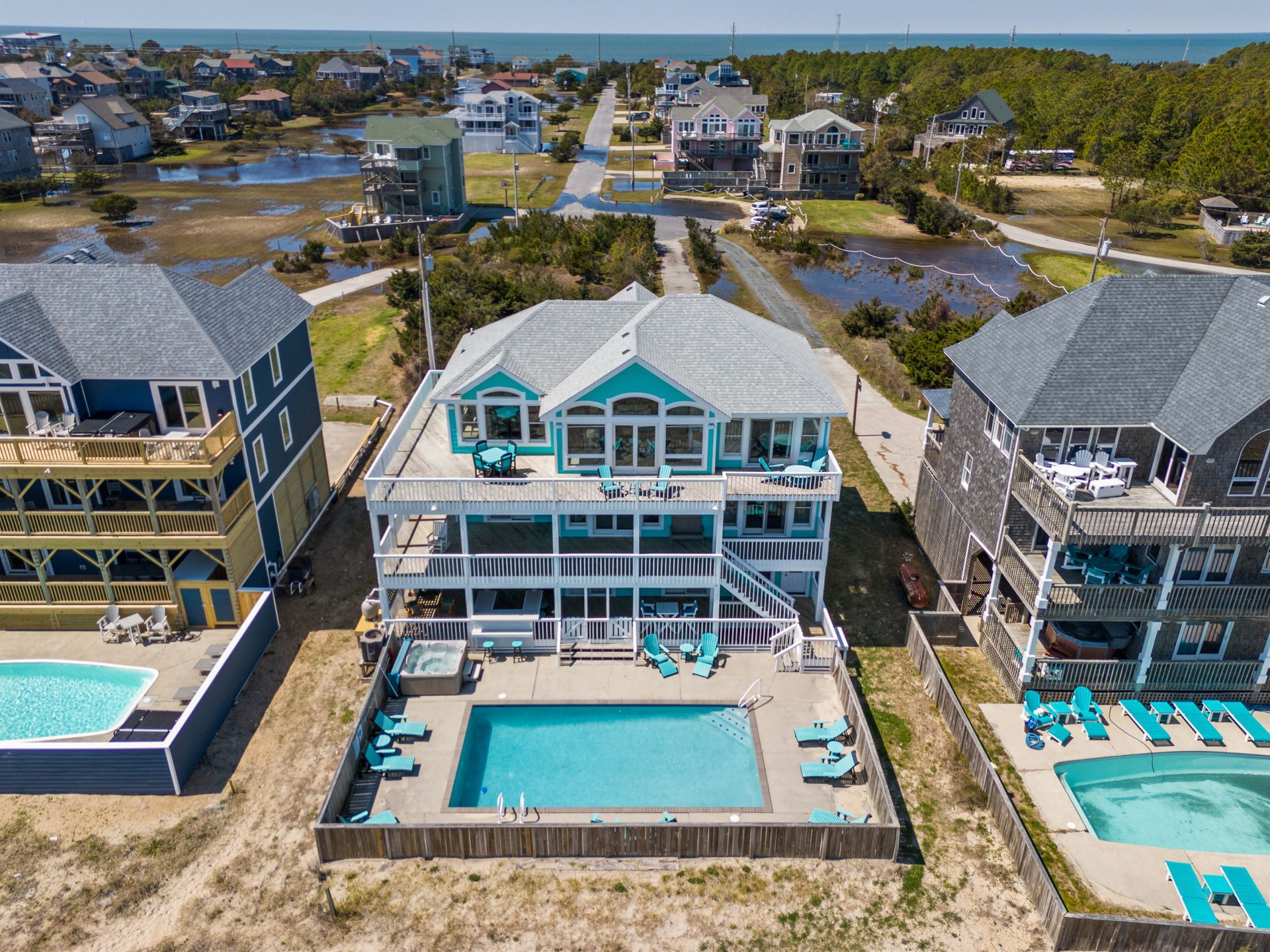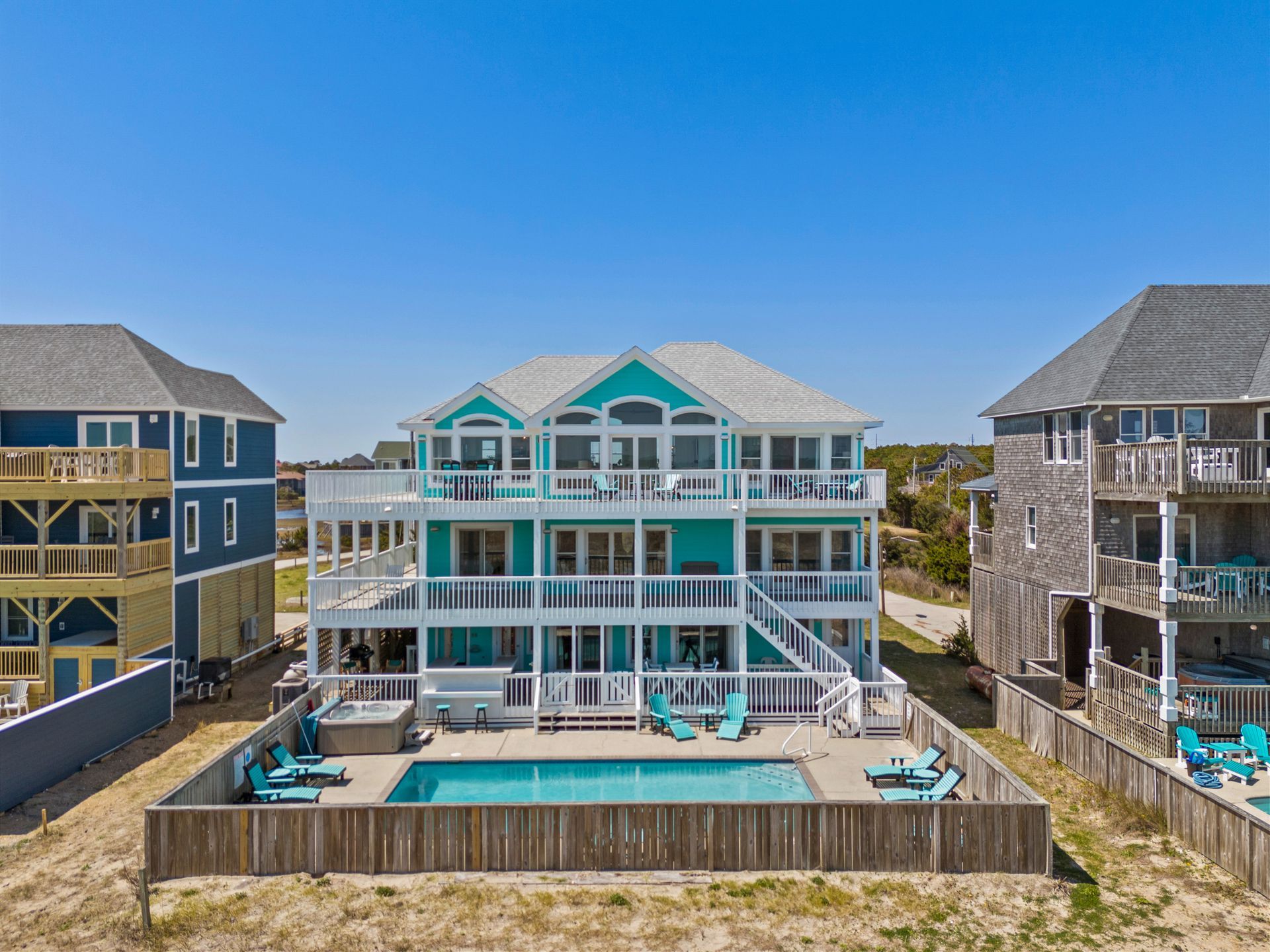 Immerse yourself in the soothing coastal breezes at this large and luxurious oceanfront home. Nestled along the pristine Cape Hatteras National Seashore, this island retreat boasts luxurious touches that can be hard to find in the rustic Outer Banks. The Blue Moon has much to enjoy, including expansive views of the ocean from the top level, decks, pool, hot tub & more! The house sits close enough to the ocean to see the waves, and sometimes see dolphins play while having your morning coffee.