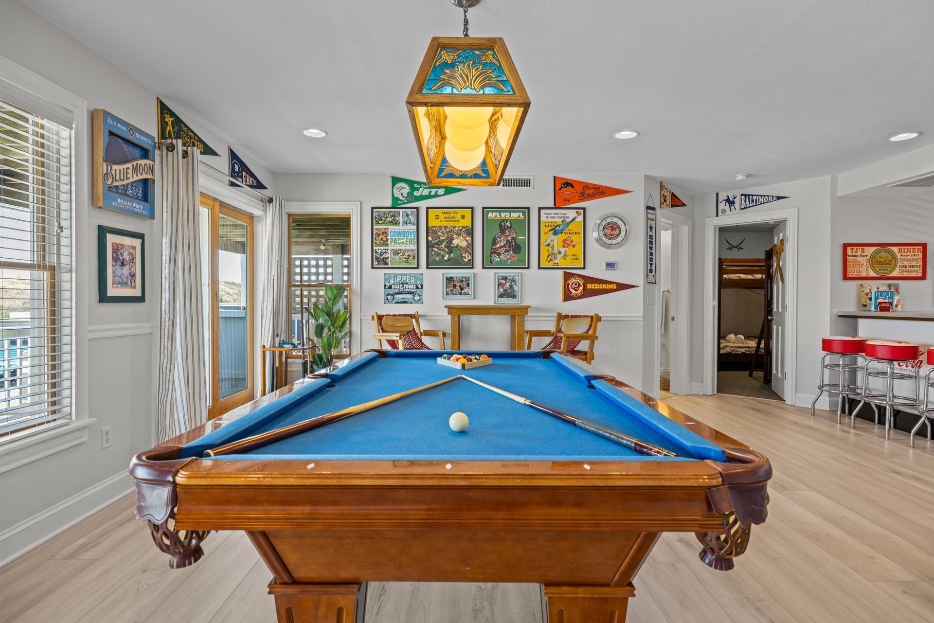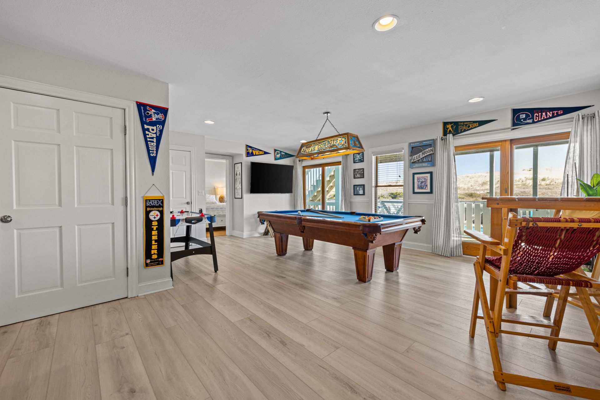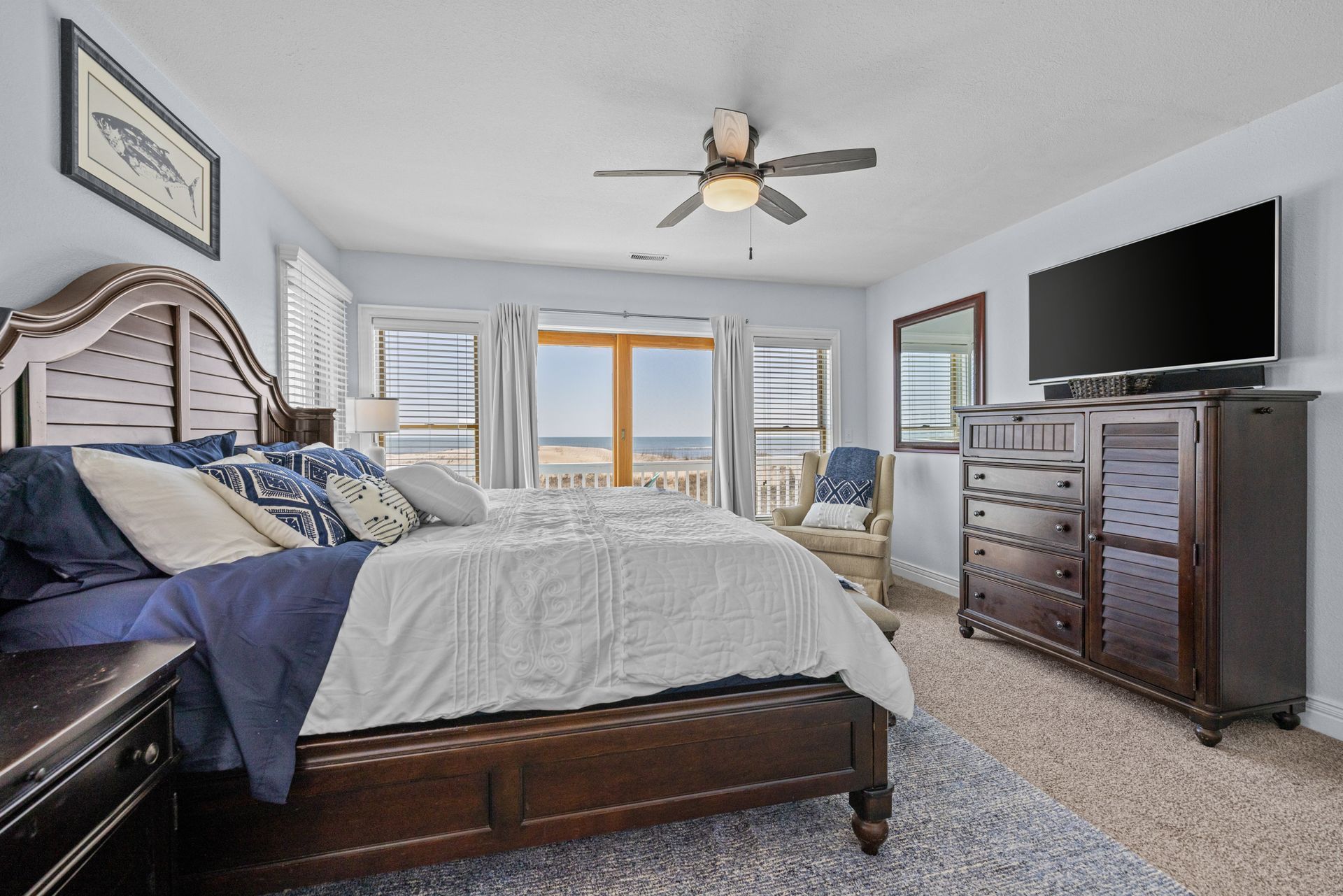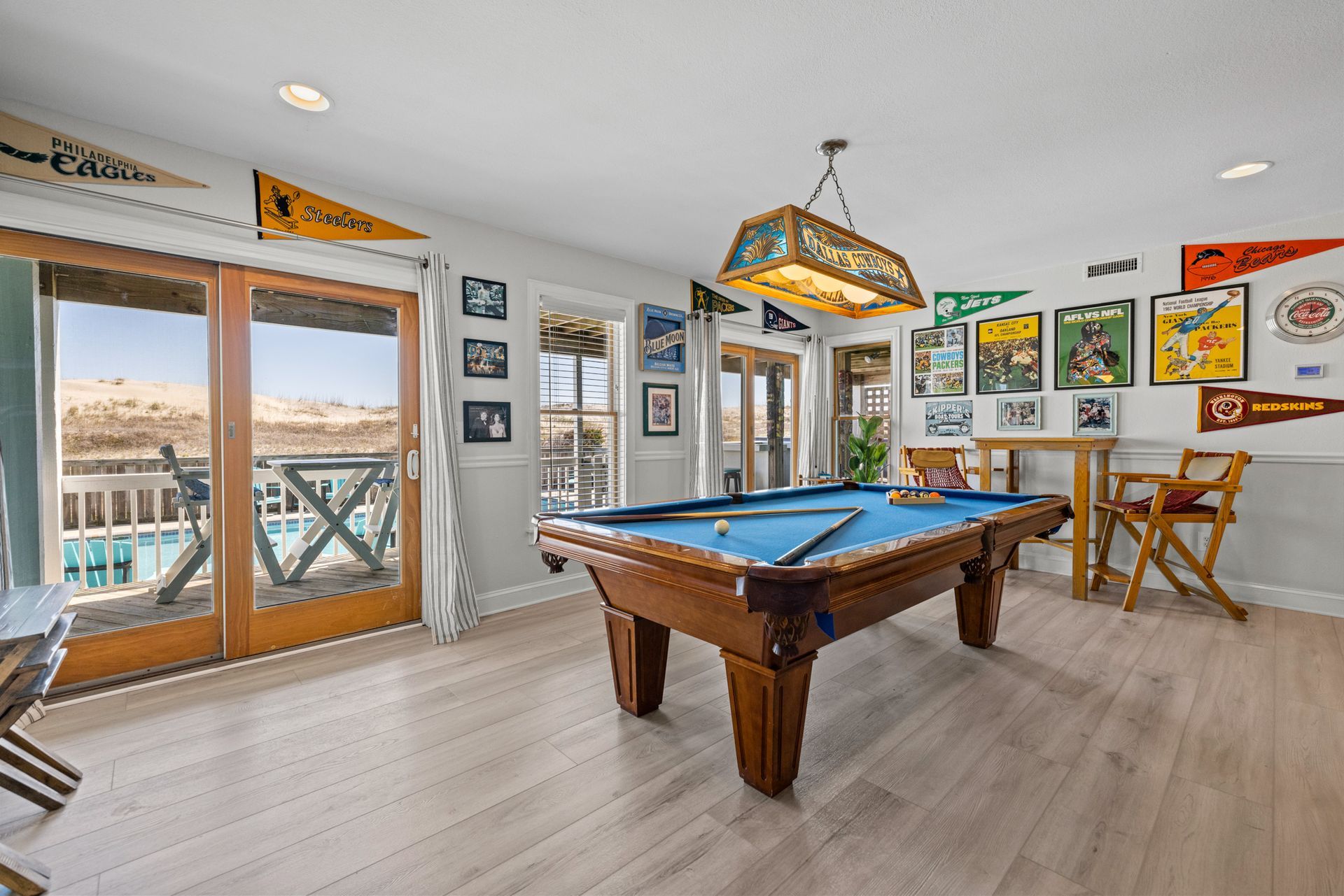 Immerse yourself in the soothing coastal breezes at this large and luxurious oceanfront home. Nestled along the pristine Cape Hatteras National Seashore, this island retreat boasts luxurious touches that can be hard to find in the rustic Outer Banks. The Blue Moon has much to enjoy, including expansive views of the ocean from the top level, decks, pool, hot tub & more! The house sits close enough to the ocean to see the waves, and sometimes see dolphins play while having your morning coffee.